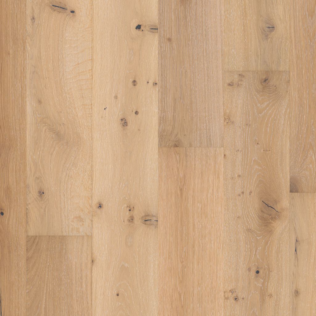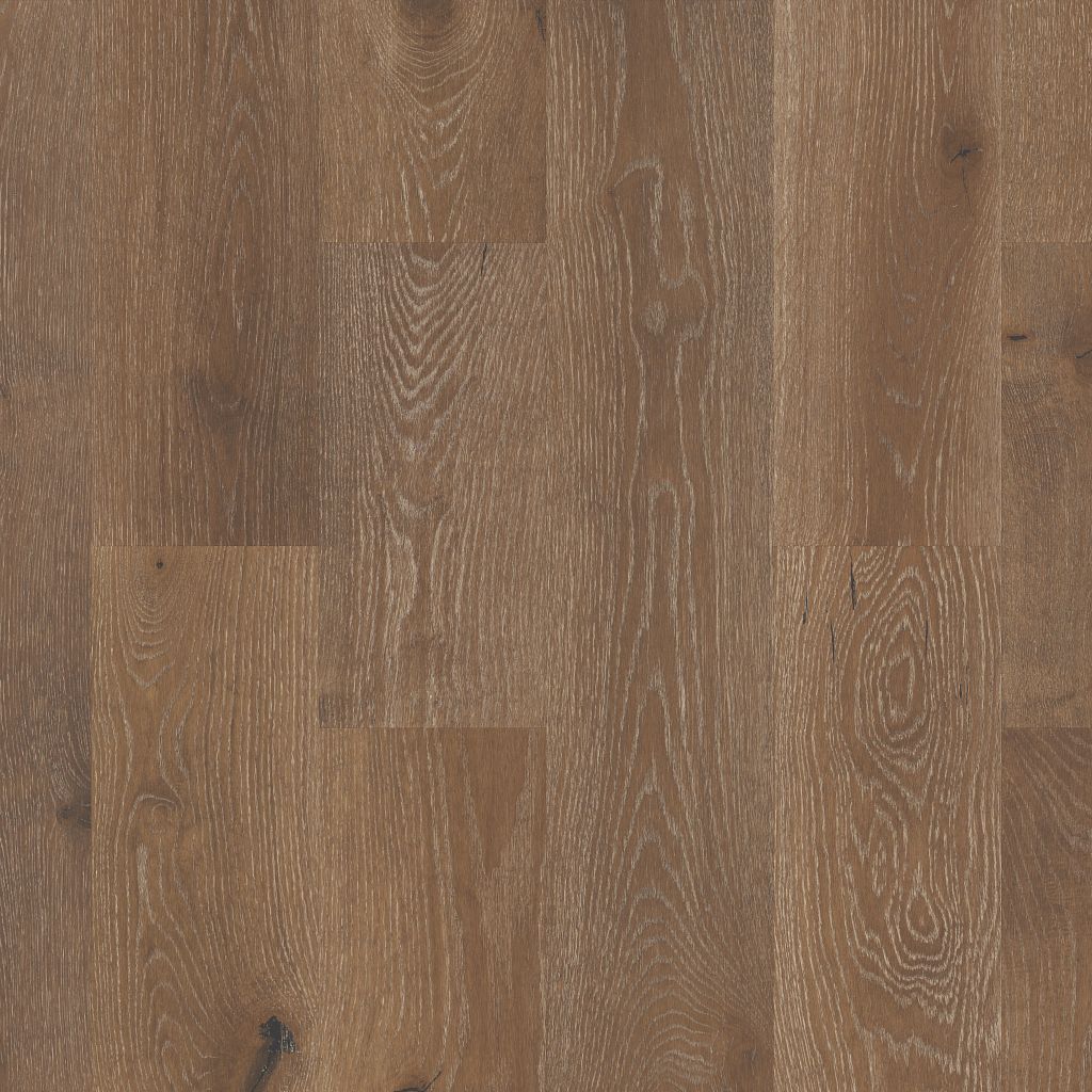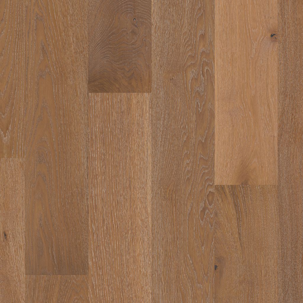 Shaw Floors Castlewood Oak Collection hardwood has an abundance of the natural charm that makes hardwood floors so desirable. Creating its stunning character are stylish 7 1/2″ widths, extremely handsome linear graining, and sawn face veneers that closely resemble solid hardwood. Castlewood’s colors are visually rich – with the beautiful knots, mineral streaks, and natural splits seen in heirloom woods. Heightening its appeal is a very low-gloss finish, which calls to mind vintage European oil-rubbed floors.